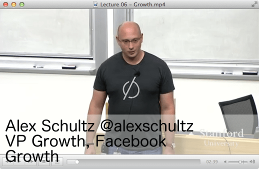 Alex Schultz, VP of Growth at Facebook presents strategies and tactics used to contribute to Facebook’s tremendous growth.