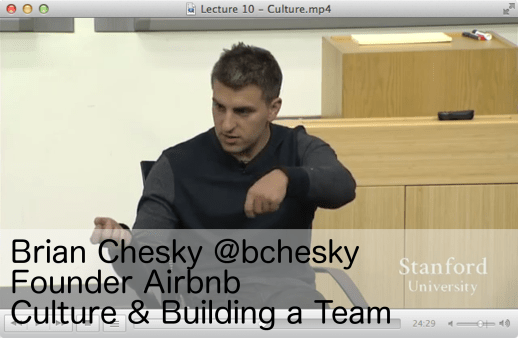 Alfred Lin, Former COO, Zappos and Partner, Sequoia Capital; Brian Chesky, Founder, Airbnb talk about the importance of building company culture and building a team around core values. Lecture starts off academic and then picks up at 11m25s with Brian Chesky interview.